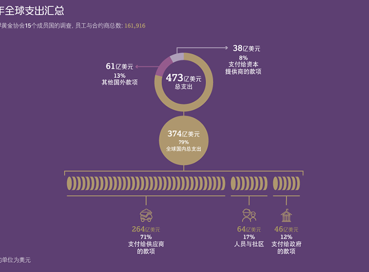 报告编写期间,世界黄金协会与会员企业合作编订了统一的《支出定义指导说明》。我们鼓励所有金矿开采企业在提供其支出数据时使用该《指导说明》,这样的话,就能够帮助所有利益相关方更好地理解金矿开采的经济学原理和利益的分布情况。”